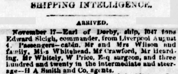 Newspaper Cuttings about the ship Earl of Derby’s arrival in Melbourne