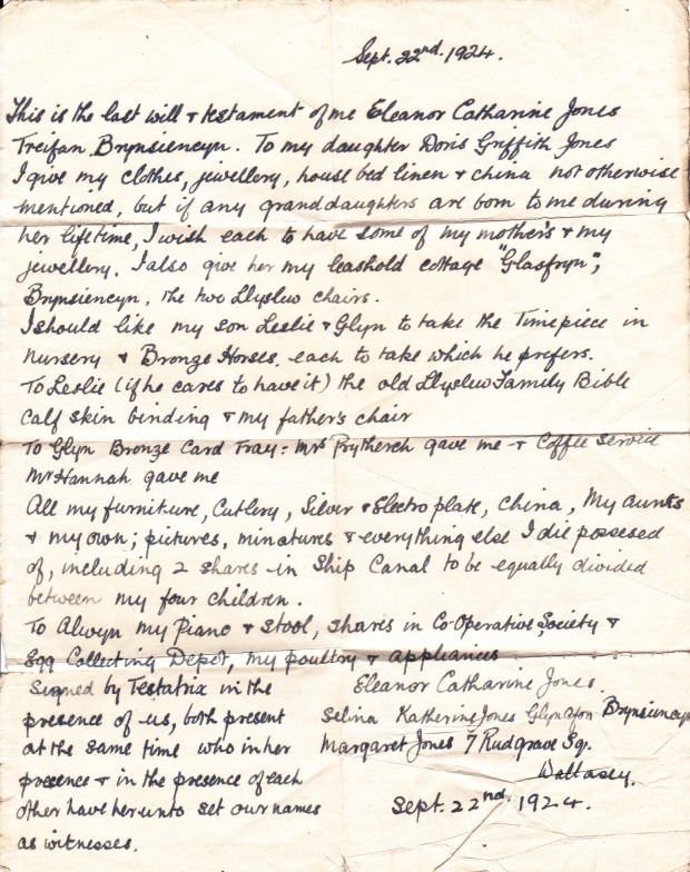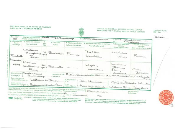Eleanor Catharine Jones Documents Marriage Certificate of William Humphreys Jones and Eleanor Catharine Jones Death Certificate of Eleanor Catharine Jones Will Of Eleanor Catharine Jones Share this: Click to share on X (Opens in new window) X Click to share on Facebook (Opens in new window) Facebook Like Loading... Related