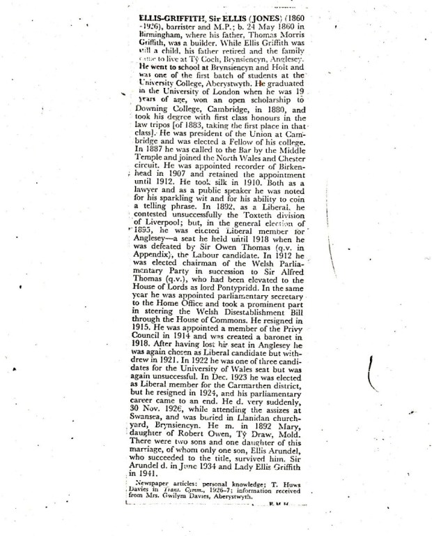 Sir Ellis Jones Ellis-Griffith Obituary (original) To view this document as a pdf click here Share this: Click to share on X (Opens in new window) X Click to share on Facebook (Opens in new window) Facebook Like Loading... Related
